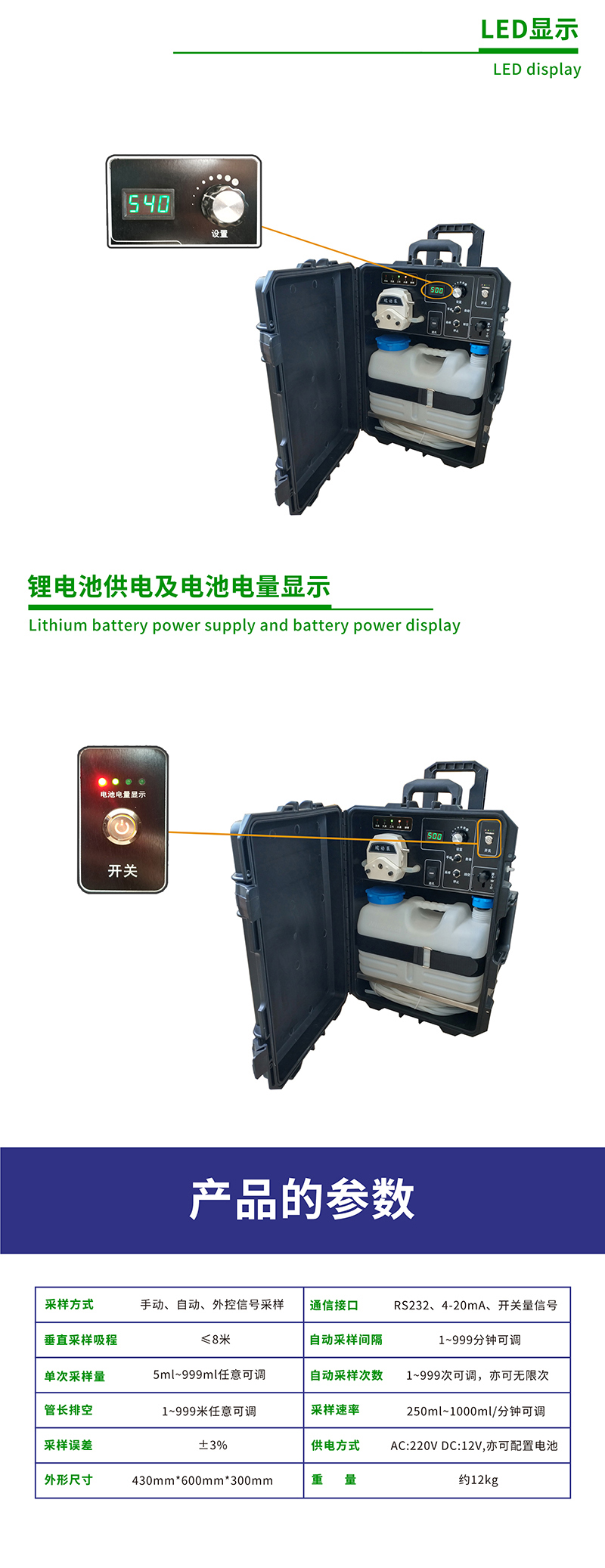 15. 平行采樣距離:≤100米;垂直采樣吸程:≤8米;