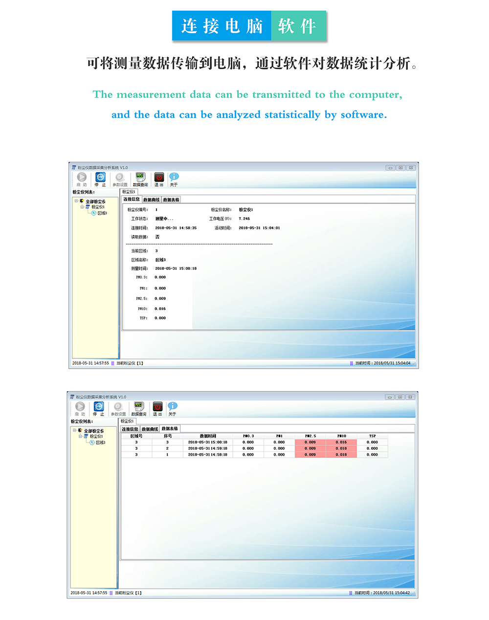 9.可將測量數據傳輸到電腦,導成Excel表格,通過軟件對數據統計分析;