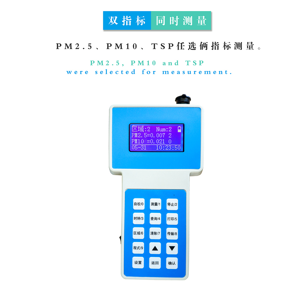 2.測量范圍:TSP:0.001~60mg/m3,pm10:0.001~20mg/m3,pm2.5:0.001~10mg/m3;