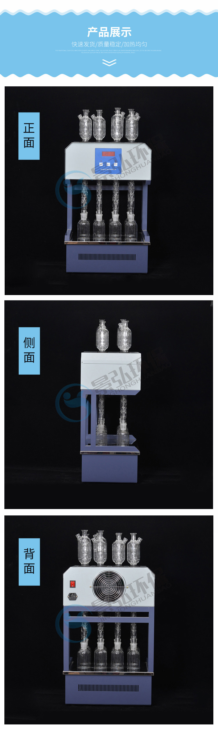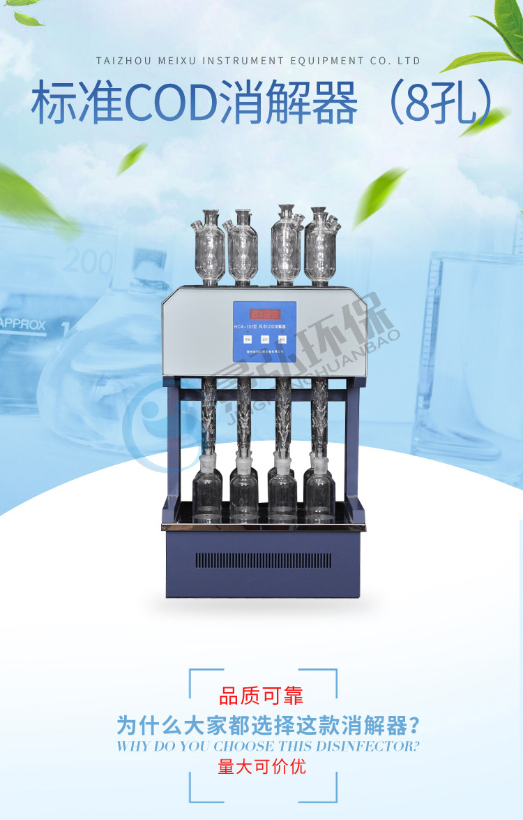 COD消解器遵循了國家標準HJ828-2017的基本原則,回流加熱微沸2小時的消解操作,試劑溶液的配制和加入量都和HJ828-2017法一致。