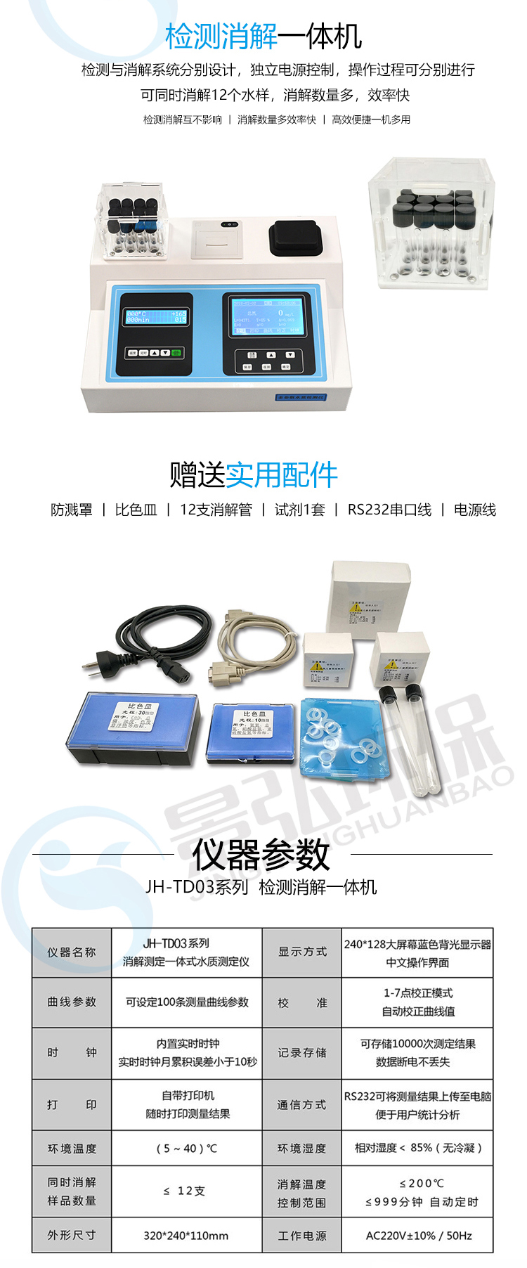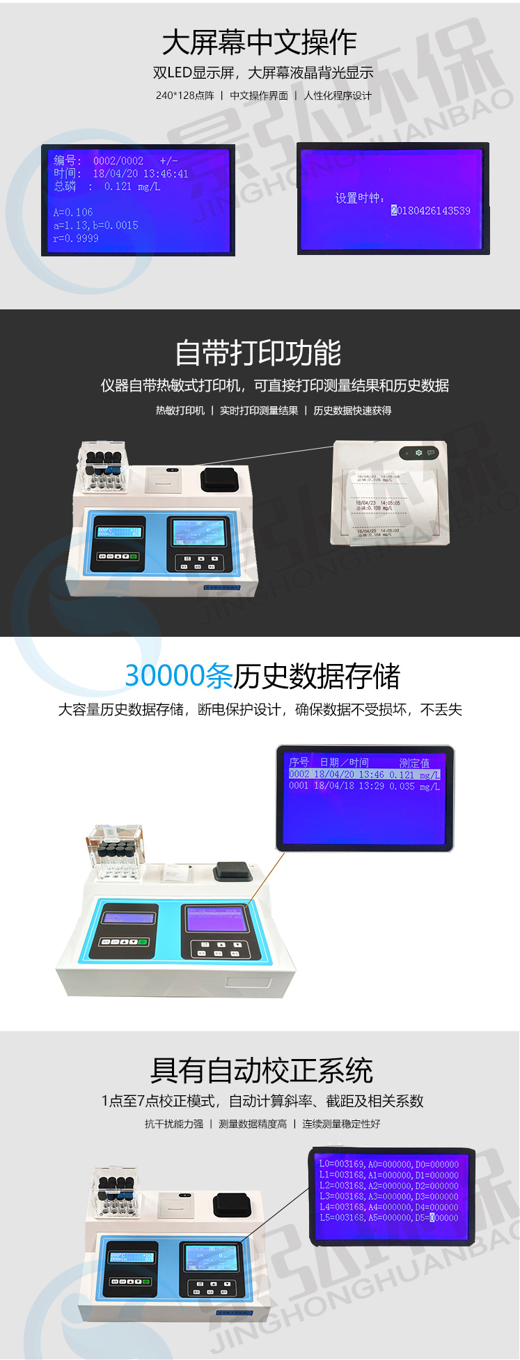 本儀器具有自動PID控溫、雙液晶顯示、自動調零、濃度直讀、曲線存儲、內置打印等特點,儀器操作簡便,人機交互式操作,使用者無需復雜的專業知識即可應用本產品。產品的設計性能滿足環境保護行業標準《HJ/T399-2007 水質 化學需氧量的測定 快速消解分光光度法》要求。