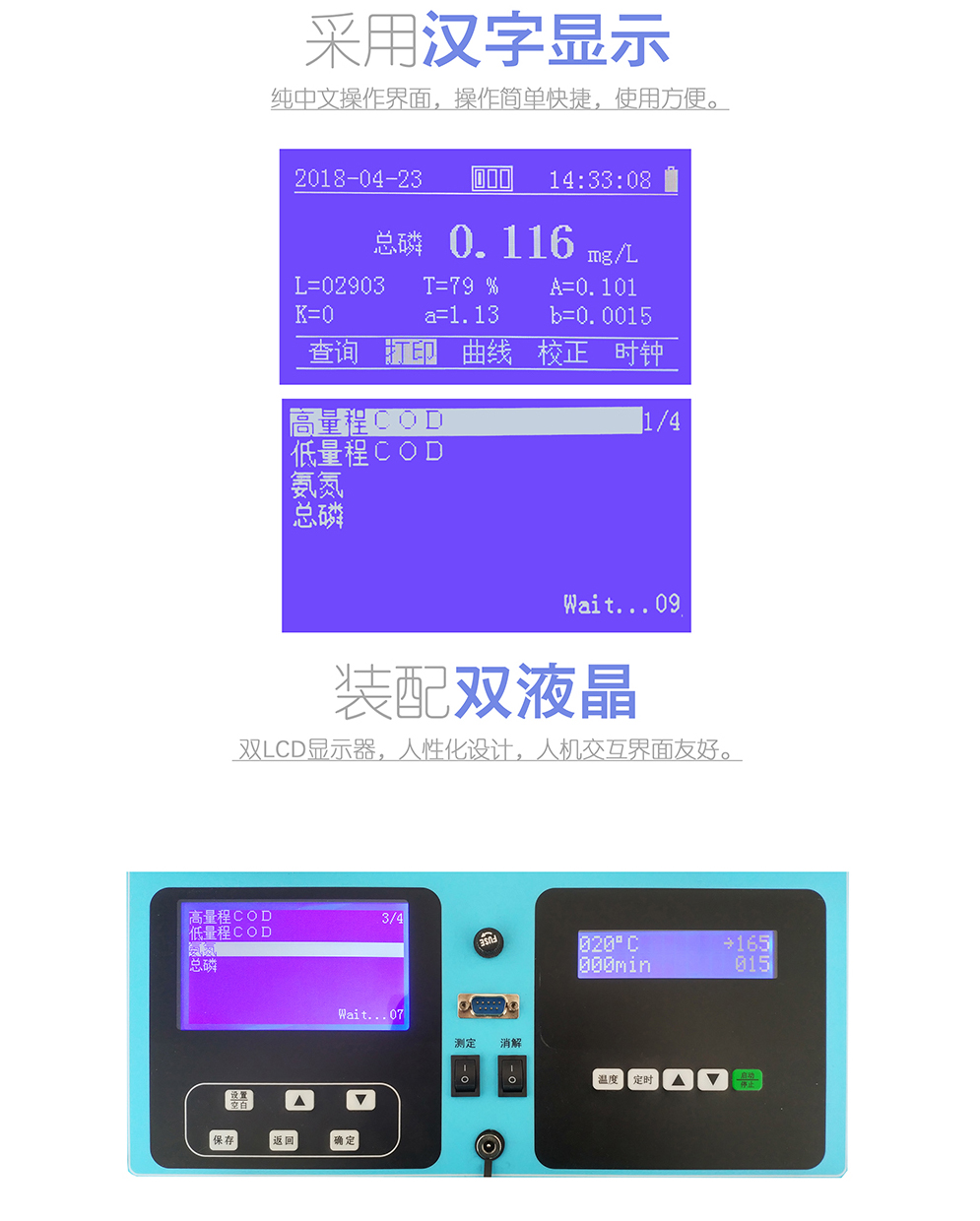 1.雙LCD顯示器,純中文操作界面,人性化設(shè)計(jì),人機(jī)交互界面友好;