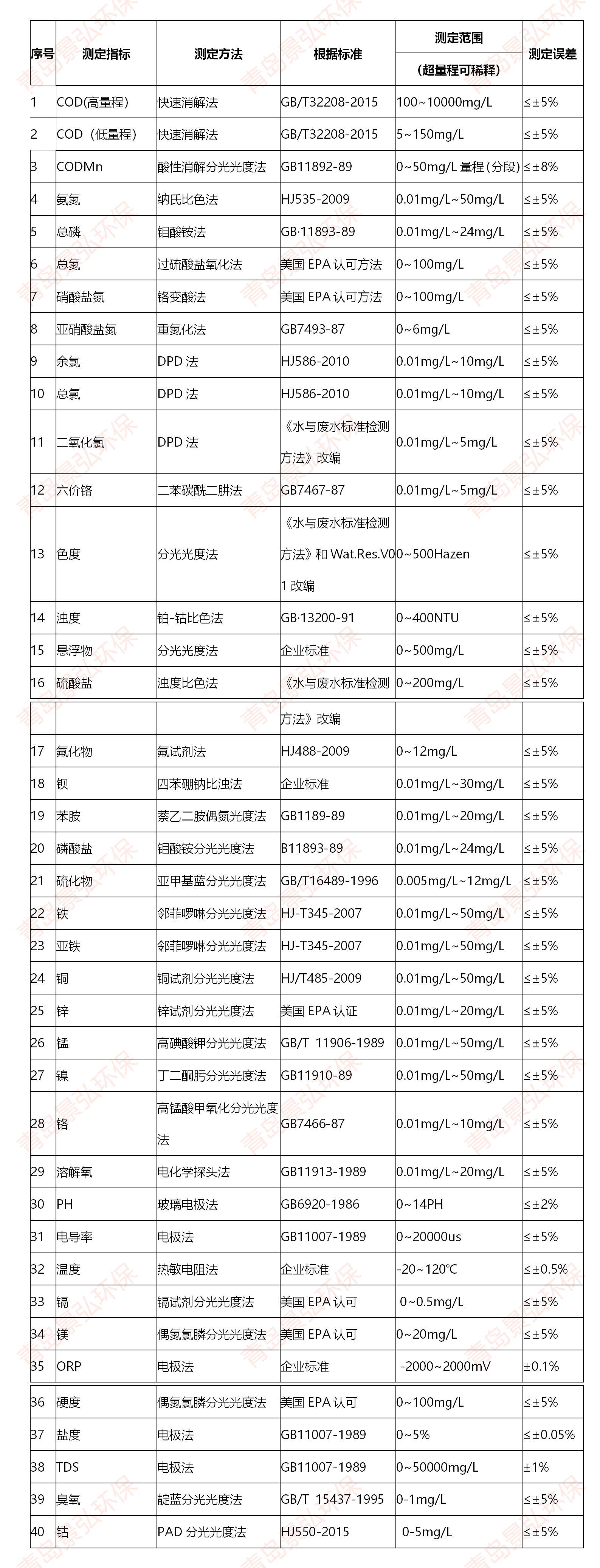 6. 抗氯干擾:[CL-] <1000mg/ L(>1000mg/L可稀釋測定)。