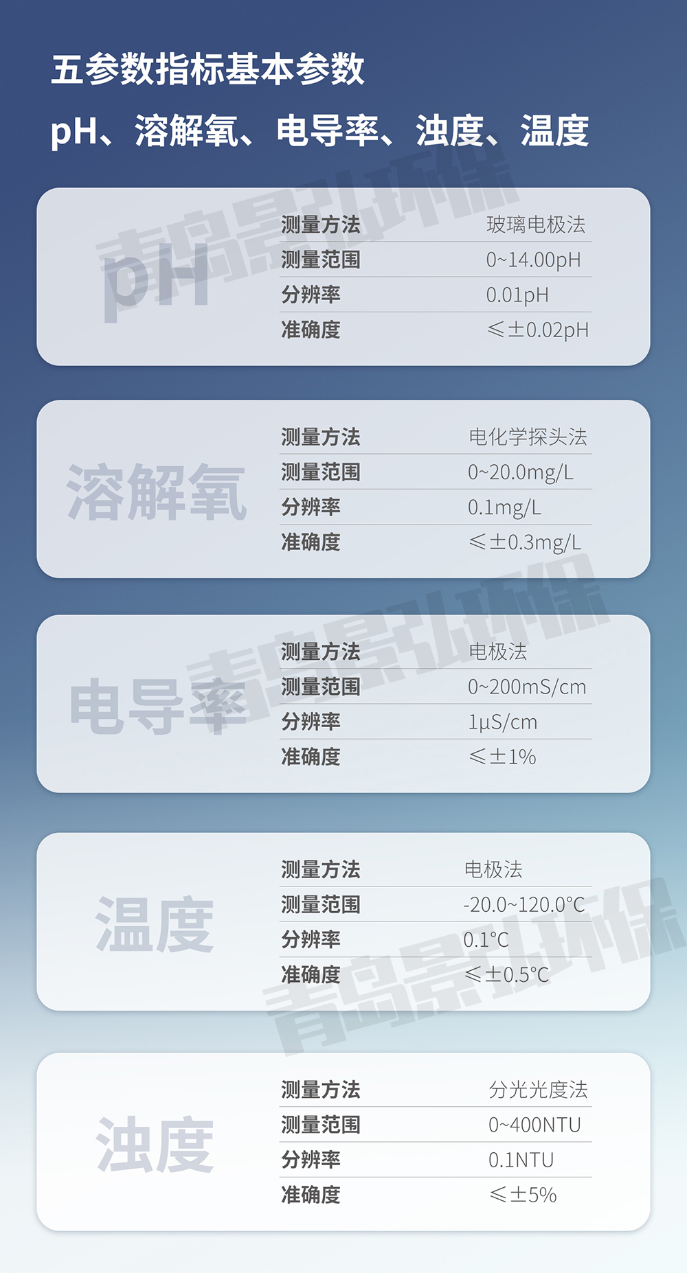 PH/溶解氧/電導率/溫度/濁度 |