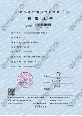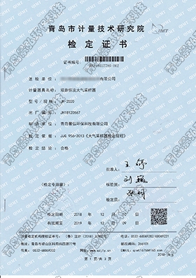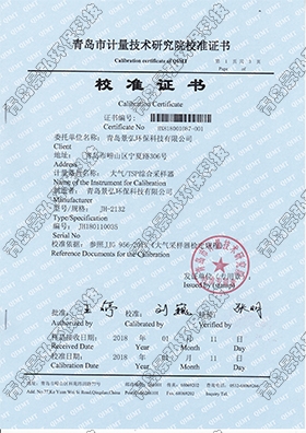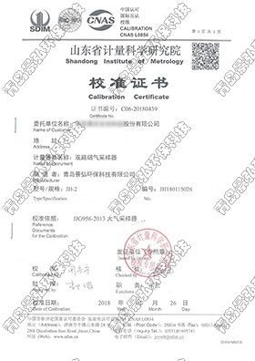 JH2020大氣采樣器檢定證書