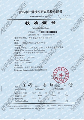 青島計(jì)量院-多參數(shù)水質(zhì)校準(zhǔn)證書