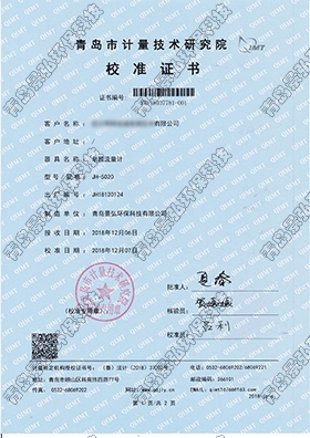 JH5020皂膜流量計(jì)校準(zhǔn)證書